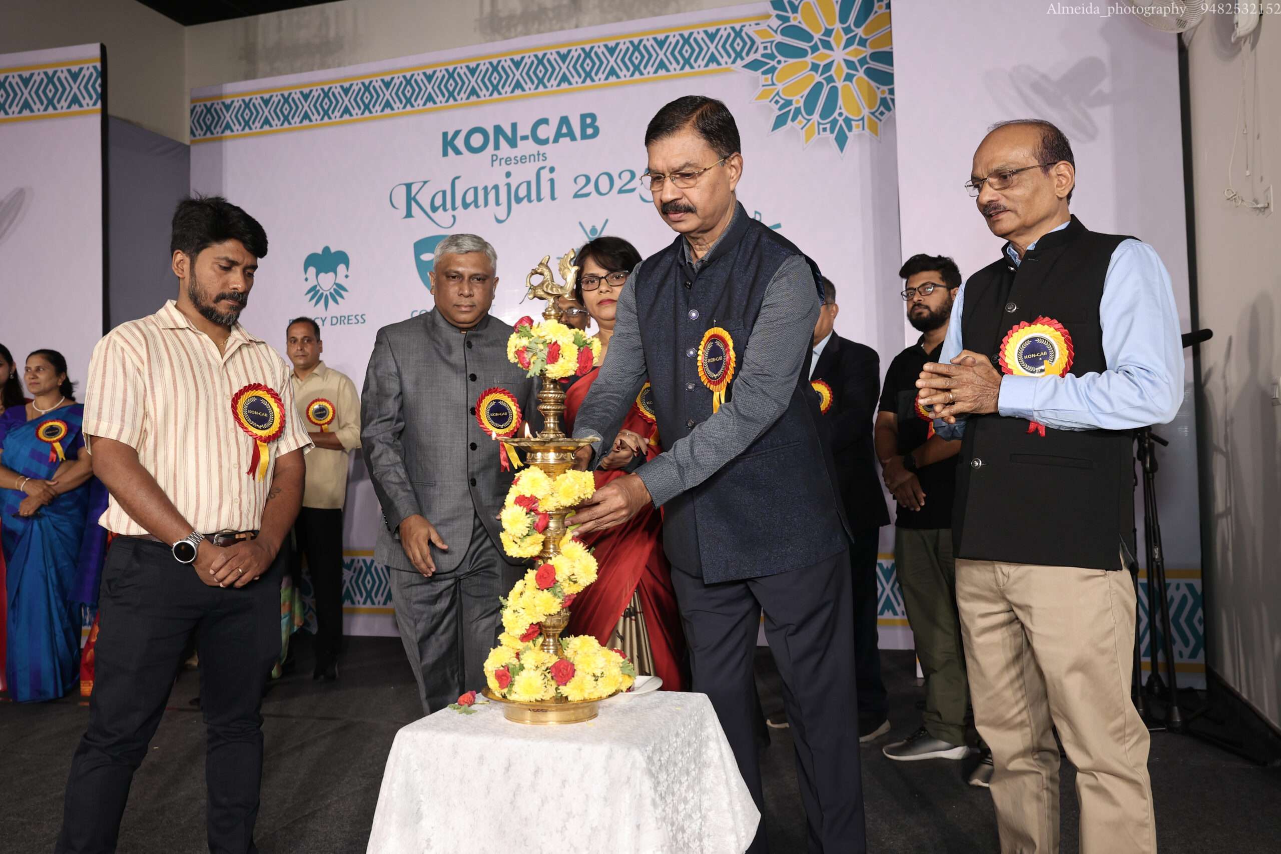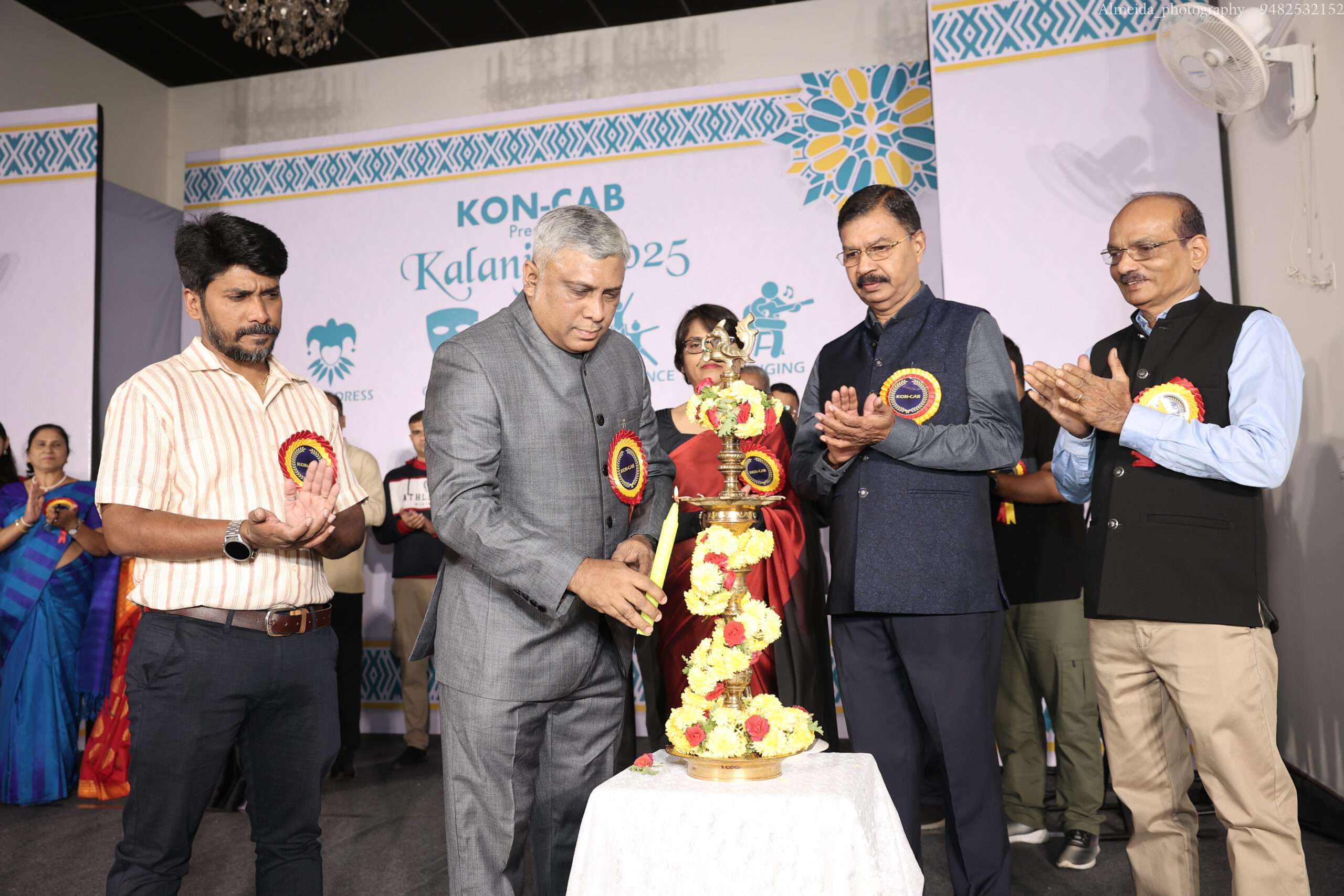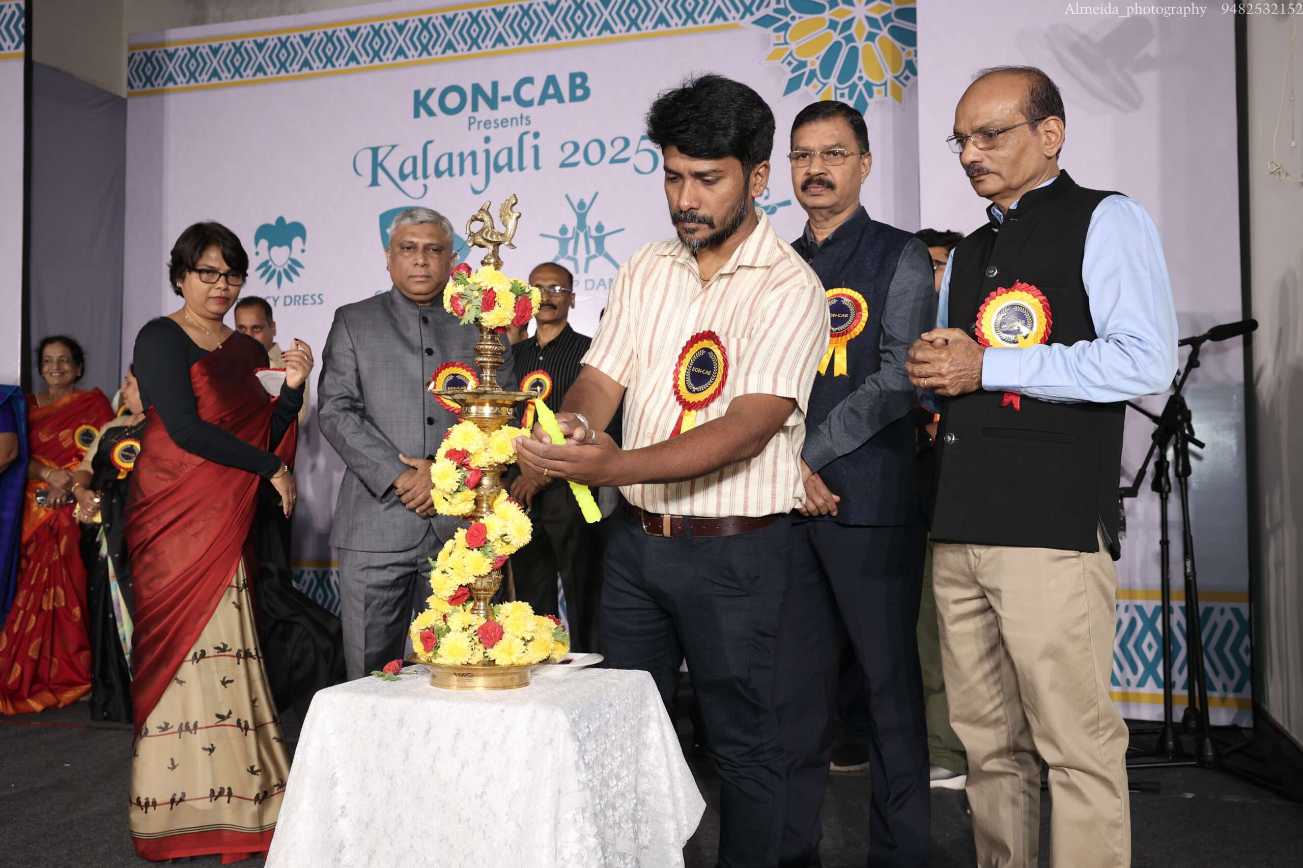 KON-CAB president Arun Fernandes formally inaugurated the programme by lighting the lamp, accompanied by secretary Rita Lobo, vice president Sylvester D’Souza, treasurer Harold Lewis and cultural secretary Sunny D’Souza. Following this, Kalanjali 2025 was declared open by the president Arun Fernandes.