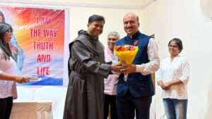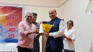 After the retreat, there was a session for honouring Chevalier Nigel Fernandes for his rare feat, which has brought him the recognition of knighthood of the Order of St. Sylvester, bestowed on him by the Holy Father – Pope Leo XIV. This medal of honour is one of the highest awards bestowed with the special objective of rewarding the laity who are active in the apostolate, particularly in the exercise of their professional duties and mastery of the different arts. A short video on the relevance of the insignia was played on the screen before Fr. Rudolph gave away the memento to Chevalier Nigel Fernandes in the presence of the members.